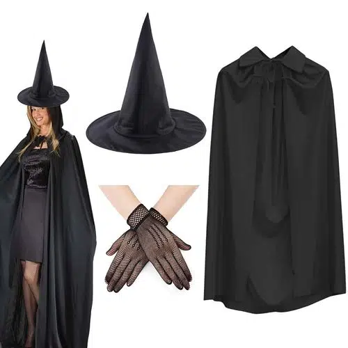Temalı partiler, tiyatro gösterileri ve cosplay etkinlikleri için özel olarak tasarlanmış bu 3 parçalı cadı kostüm seti, gizemli ve şık bir görünüm sunar. Set içerisinde 120 cm siyah yakalı pelerin, klasik cadı şapkası ve uzun tasarımlı 1 çift siyah file tüm eldiven bulunur. Hafif ve rahat kumaşı sayesinde kolay kullanım sağlar. Yetişkinler için uygundur ve kostümünüzü tamamlayarak dikkat çekici bir tarz oluşturur.
