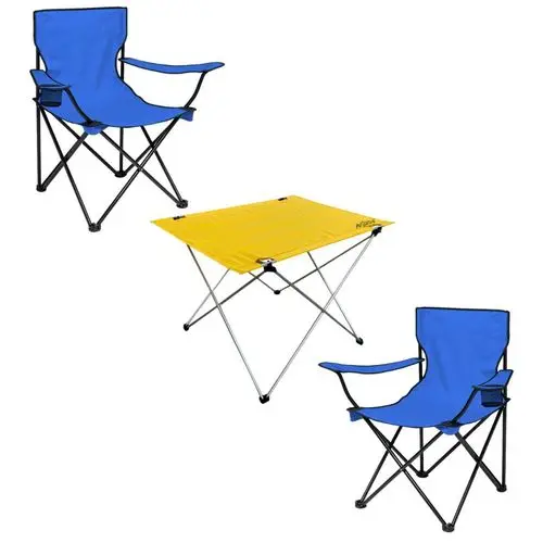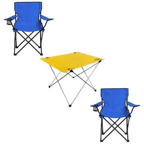 2 Adet Katlanır Kamp Sandalyesi ve Masa Seti - (DY.001) - Mavi/Sarı