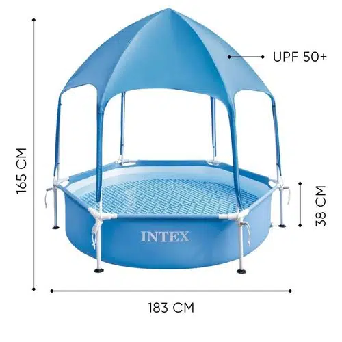 Intex 28209 gölgelikli prefabrik aile havuzu, yaz aylarında çocukların güvenli ve kontrollü şekilde serinlemesi için tasarlanmış çerçeveli bir havuz modelidir. 183 cm genişliği ve 38 cm yüksekliği ile bahçe ve düz zemin alanlarında pratik kullanım sunar. Dahili çıkarılabilir tente sistemi sayesinde doğrudan güneş ışığını azaltarak çocukları UV maruziyetine karşı korumaya yardımcı olur. Özellikle gölgelikli çocuk çerçeveli havuz 183 cm arayan aileler için hem güvenli hem de konforlu bir çözüm sunar.