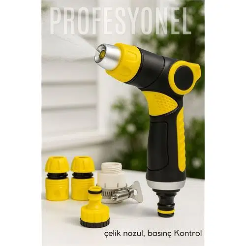 * Paslanmaz Çelik Uç: Geleneksel nozulların aksine, bu tabancanın sulama başlığı paslanmaz çelikten üretilmiştir. Bu, sadece dayanıklılık değil, aynı zamanda yıllarca sürecek keskin ve güçlü bir su jeti performansı demektir. Paslanma, aşınma ve yıpranmaya meydan okur.