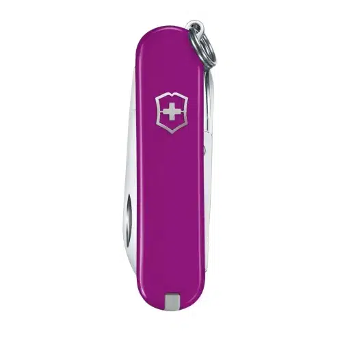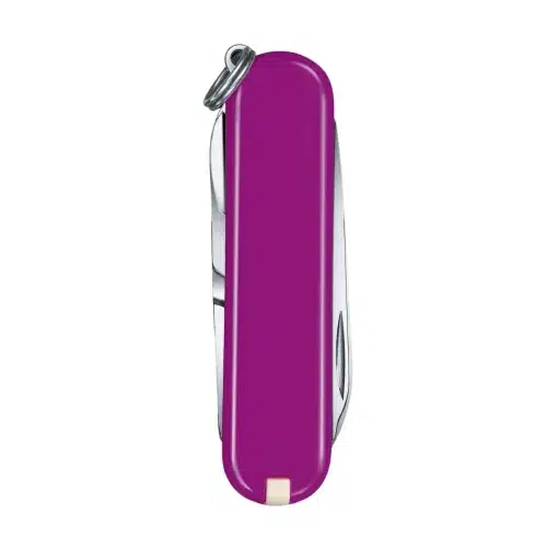 Classic Tasty Grape Mor Çakı, günlük görevlerinizde vazgeçilmez bir yardımcı olurken canlı rengiyle de tarzınıza şıklık katar. Küçük boyutu sayesinde anahtarlığınızda ya da cebinizde rahatça taşıyabilir, ihtiyaç duyduğunuz her an kullanabilirsiniz. İsviçre kalitesi ve Victorinox güvencesiyle uzun yıllar size eşlik edecek!
