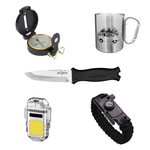 Doğa tutkunları için özel olarak hazırlanan Dağcı ve Kampçılara Özel 5’li Survival Set, kamp, yürüyüş, avcılık ve açık hava maceralarında ihtiyaç duyabileceğiniz temel ekipmanları bir araya getirir. Dayanıklı, taşınabilir ve fonksiyonel ürünleriyle her an maceraya hazır olmanızı sağlar.