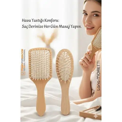 Doğal Ahşap Antistatik Saç Fırçası (2 Boy: 23x8 & 22x6 cm) - Hava Yastıklı