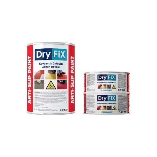 DryFiX ANTI-SLIP PAINT kaymaz boya; kayganlık problemi yaşanan yüzeyler için geliştirilen, 3 komponentli, sürtünme katsayısı yüksek, özel mineral agregalı, yeni nesil kaymaz zemin boyasıdır.