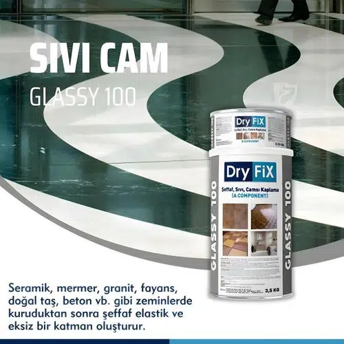 Dryfix Glassy 100 Sıvı Cam uygulanacak yüzeyler her türlü yağ, kir, toz, pas vb. kalıntılardan arındırılmalı, temiz ve kuru olmalıdır. İyi bir adezyon için yüzey temizliği çok iyi yapılmalıdır.