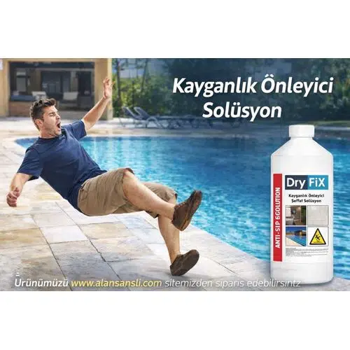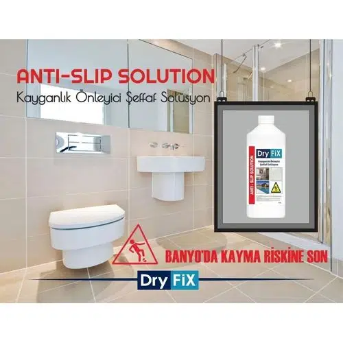 DRYFiX Kaydırmaz Solüsyon: Parlak ve kaygan seramik-fayans yüzeylerde, kaymazlık sağlayan, yüzeyin sürtünme katsayısını artıran, şeffaf solüsyon olarak üretilmiştir. Uygulandığı fayans ve seramiğin görüntüsünü değiştirmeden, zeminin içine nüfuz ederek kaymazlık sağlar. Islak ve kuru olmak üzere her iki durumda da kaymazlık performansı göstermektedir