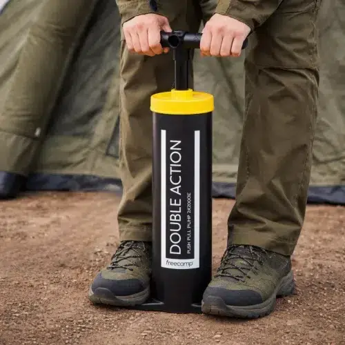 FreeCamp PowerGrip el pompası, çift yönlü çalışma sistemi ve dayanıklı yapısı ile kamp ekipmanlarının hazırlanmasını kolaylaştırır. Doğru ekipman, keyifli kamp.