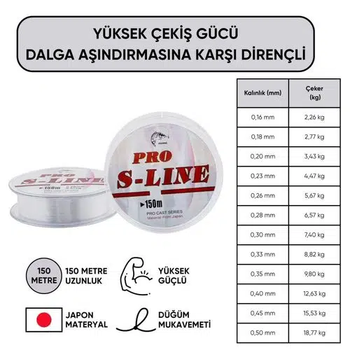 Su içerisinde neredeyse görünmez olan Pro S-Line şeffaf misina, ince yapısına rağmen sunduğu yüksek çekme kuvveti ve esnekliği ile hassas balık avlarında güvenle kullanabileceğiniz profesyonel bir tercihtir.