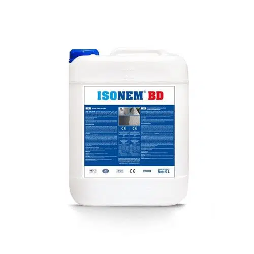 Uygulama şekli: ISONEM BD bidonunda iyice çalkalanarak karıştırılır. Daha sonra plastik bir kovaya dökülerek hazırlanan yüzeye bir fırça yardımıyla iyice yedirilir. ISONEM BD seramik, mermer vs. gibi sırlı yüzeyde emilmediği için kuruyunca leke yapması nedeniyle önerilmemektedir. Bu nedenle, özellikle derzlere dikkatlice sürülür. Sürülen yüzey bir saat kurumaya bırakılır. Bir saat sonra nemli bir bez ile emilmeyen yüzeylerde kalan malzeme artığı temizlenir. Temizleme işlemi mutlaka nemli bezle yapılmalıdır ve deterjan türü şeyler kullanılmamalıdır. İkinci kat uygulama maksimum bir saat içerisinde ilk kat uygulama kurumadan yaş üstü yaş aynı işlemler tekrarlanarak yeniden yapılır ve bir saat sonra nemli bezle seramik ve mermerlerin üzeri silinerek ikinci ve son kat uygulama bitirilir.