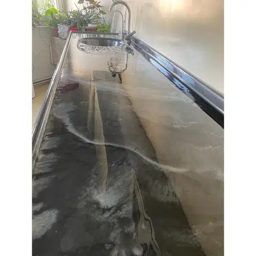 SIVI MERMER, iki bileşenli, yansıtmalı pigmentler ve estetik efektler sayesinde eşsiz dekoratif görüntü sağlayan düşük viskoziteli, solventsiz, kendinden yayılan, çok amaçlı iç mekan tezgah ve zemin kaplamasıdır. Uygulaması kolaydır, parlak mermer görünümlü bir yüzey sağlar, su geçirimsiz ve hijyeniktir, temizliği kolaydır. Mekanik yüklere, aşınmaya ve kimyasallara karşı dayanıklıdır.
