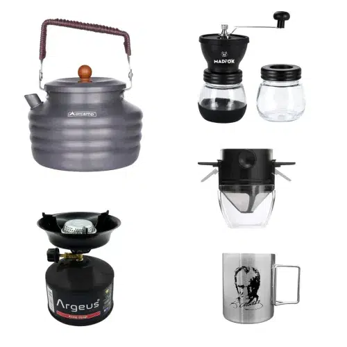 | Set İçeriği | 1 Kamp Çaydanlığı, 1 Kamp Ocağı, 1 Kahve Değirmeni, 1 Kahve Filtresi, 1 Çelik Kupa |