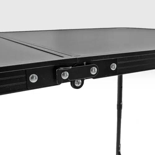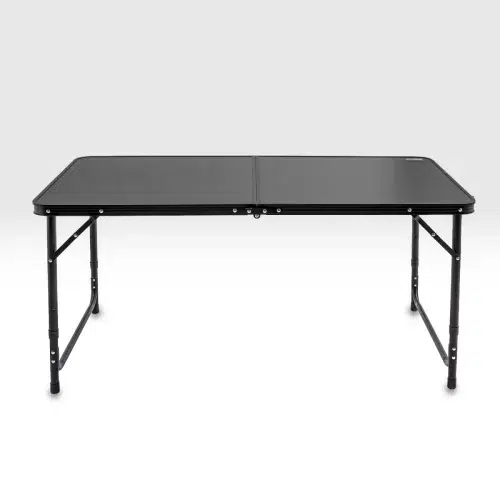 Elevate kamp masası, MDF yüzey ve alüminyum profil çerçeve yapısı ile hem dayanıklılık hem de taşınabilirlik sunar. Açık ölçüleri 120 x 60 cm olup maksimum 70 cm yüksekliğe ulaşır. Kapalı halde 60 x 60 x 7 cm ölçülerine düşerek araç içinde minimum yer kaplar.