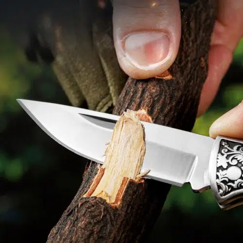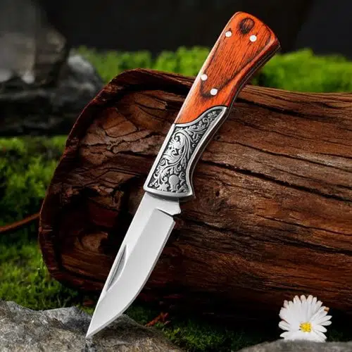 Katlanır cep çakısı, dayanıklı yapısı ve pratik taşınabilirliğiyle günlük kullanımda büyük kolaylık sağlar. Ergonomik sapı ve sağlam çelik bıçağıyla hem işlevsel hem de şık bir yapıya sahiptir. Kabzesindeki motif detayıyla estetik bir görünüm sunar.