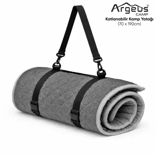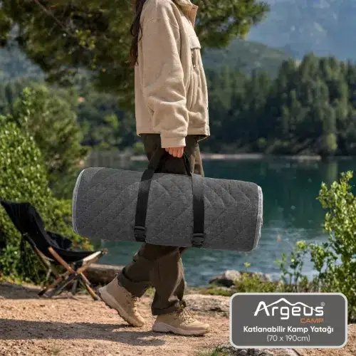 Argeus Katlanır Kamp Yatağı, çadır içinde veya açık hava konaklamalarında zeminden gelen sertliği azaltarak daha konforlu bir uyku alanı oluşturmak için tasarlanmış taşınabilir bir yer yatağıdır. 70x190 cm ölçüleri sayesinde tek kişilik konaklamalar için ideal bir kullanım alanı sunar. Özellikle 70x190 cm taşınabilir katlanır kamp yatağı arayan kullanıcılar için çadır içi konforu artıran pratik bir çözümdür.