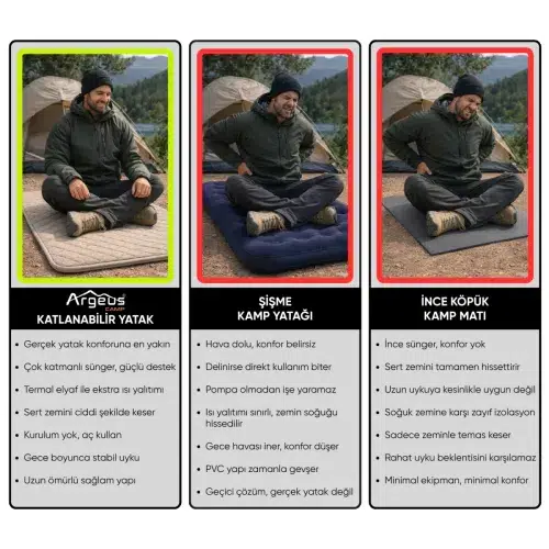 Negatif Senaryo: Uzun trekking rotalarında veya ultralight kamp ekipmanı gerektiren faaliyetlerde sırt çantasında taşımak için ağır kalabilir. Bu tür faaliyetlerde ince ve hafif kamp matları daha uygun olabilir.