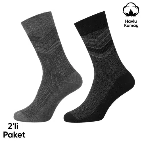Havlu Erkek Soket Çorap 2’li set, soğuk hava koşullarında ayağın sıcak kalmasını ve uzun süreli konforu desteklemek için tasarlanmıştır. Tamamen havlu dokulu iç astarı sayesinde yoğun pamuk yapısı ayağı sarar, ısıyı muhafaza eder ve yastıklama etkisi oluşturur. Özellikle kışlık havlu iç astarlı erkek termal soket çorap 40-45 arayan kullanıcılar için günlük kullanımda ve açık alan aktivitelerinde dengeli bir çözüm sunar.