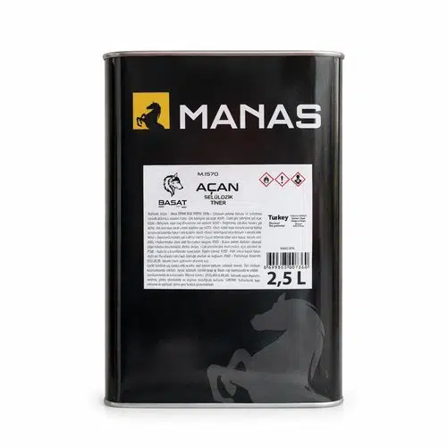 Manas Selülozik Tiner, yüksek çözme gücüne sahip, özelsolvent karışımı selülozik tinerdir.Boya Çözme İşlemlerinde ve