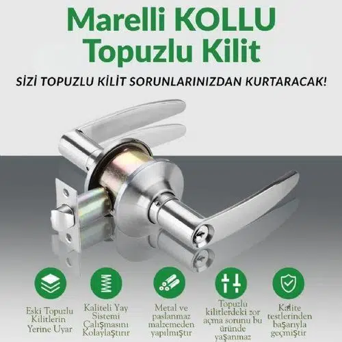 * Bildiğiniz gibi eski tip topuzlu kilitlerin yerleri yuvarlak açıldığı için normal kilitler yerine uymuyor ve o yüzden normalde kapı koluna çeviremiyorsunuz. Fakat MARELLI kollu tip bu topuzlu kilit sayesinde eski topuzlu kilidinizi kollu modele çevirebileceksiniz. Normal topuzlu kilitle değiştirir gibi değiştirebilirsiniz eski kilidinizi.