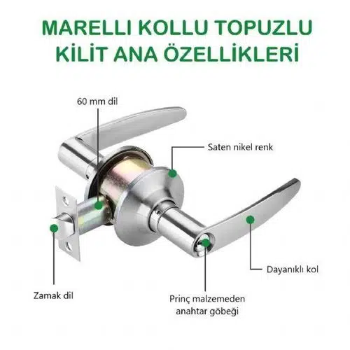 MARELLI KOLLU SATEN TOPUZLU KİLİT ANAHTARLI (amerikan tipi kilit, otel tipi kilit)