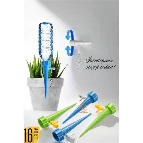 Kendi şişesi ucuna takılan aparatın damlama hızı/şiddeti yanındaki vanası ile ayarlanır ve toprağa batırılarak çiçeğin sürekli istediğiniz ölçüde sulanması sağlanır. Aynı zamanda herhangi bir 0,5 lt 1,5 lt gibi pet şişeleri de takabilirsiniz.