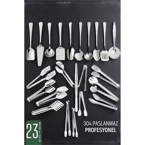 Bu 23 parçalık profesyonel mutfak gereçleri seti, mutfakta tam donanım arayanlar için üstün kalite ve çeşitlilik sunar.