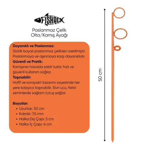 Balıkçılar için güvenilir olta kamış ayağı, kamış tutucu ve kamış desteği arayanlara Fishack paslanmaz çelik, statik boyalı, 5'li paket avantajıyla uzun ömürlü performans sunar.