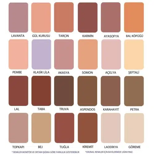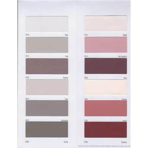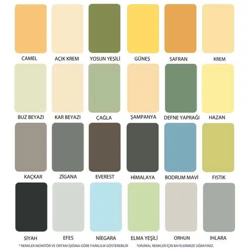 Güneş ışınlarına karşı mükemmel UV direncine sahiptir. Renk canlılığını uzun yıllar muhafaza eder.