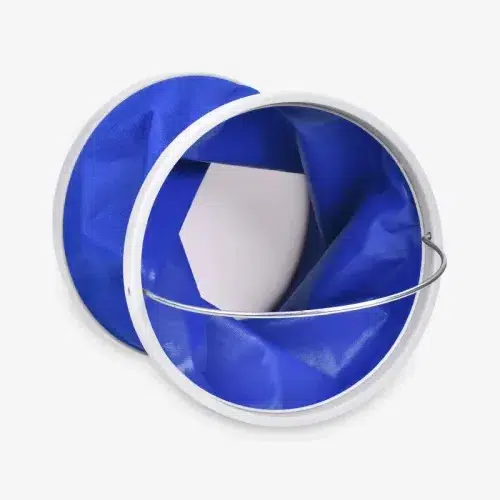 Katlanır kova, içine su doldurulduğu zaman sızdırmaz kumaş yapısıyla dik durmaktadır.