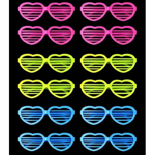 Fosforlu Kalp Panjur Gözlük, neon renkleri ve eğlenceli tasarımıyla parti ve organizasyonların vazgeçilmez aksesuarıdır. Kalp formundaki panjur yapısı sayesinde klasik gözlüklerden ayrılır ve özellikle karanlık ortamlarda fosforlu yapısıyla dikkat çeker.