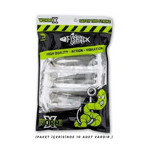 - Fishack silikon yemlerinde kullanılan özel UV aktif hammadde, düşük ışıkta dahi maksimum görünürlük sağlar. UV ışığını algılayabilen avcı balıkların dikkatini çeker ve saldırı refleksini tetikler. Böylece daha etkili ve verimli bir av deneyimi sunar.