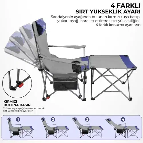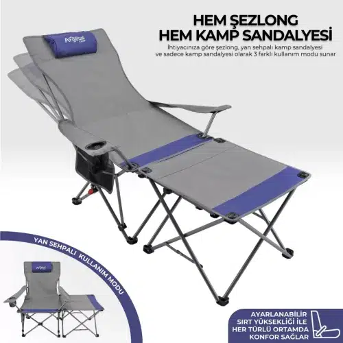 Lounge sırt ayarlı kamp sandalyesi, çok yönlü kullanım yapısı ve konfor odaklı tasarımı ile outdoor deneyiminizi iyileştirir. Doğru ekipman, keyifli kamp.
