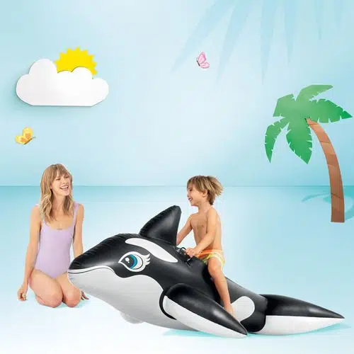 Intex Balina Ride-On ile havuzda serinleyin! Bu şişme havuz oyuncağı, 2 dayanıklı tutma kulpu ve bu yaz havuzunuzun olmazsa olmazı olacak eğlenceli bir tasarıma sahiptir!