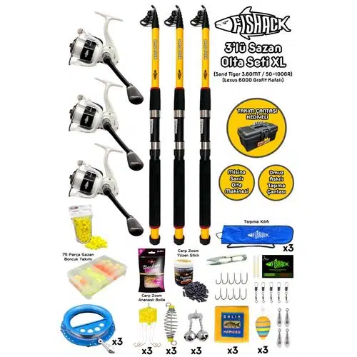 Fishack Profesyonel 3’lü Sazan Olta Seti ile Sazan Avında İhtiyacınız Olan A'dan Z'ye Her Ürün Yanınızda !