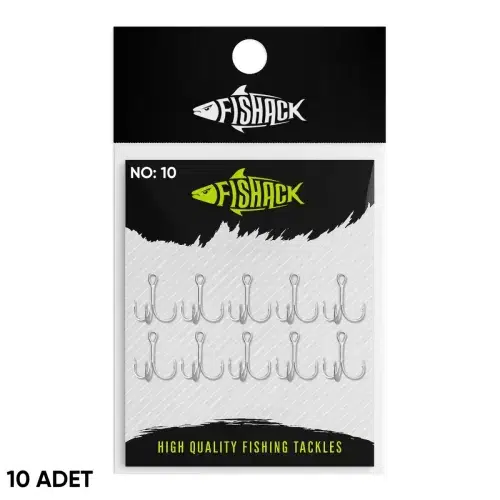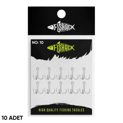 Fishack 3210 serisi üçlü iğne, lazer teknolojisiyle simetrik ve dengeli formda üretilmiştir. Çelik gövde üzerine nikel kaplama uygulanmıştır. No: 10 ölçüdeki bu model 15.69 mm uzunluğa ve 8.50 mm genişliğe sahiptir. Paket içerisinde 10 adet üçlü iğne bulunmaktadır. Farklı boy seçenekleri sayesinde çeşitli yem tipleriyle uyumlu kullanım sunar.