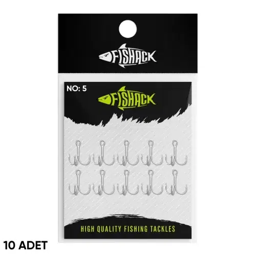 Fishack 3210 serisi üçlü iğne, lazer teknolojisiyle simetrik ve dengeli formda üretilmiştir. Çelik gövde üzerine nikel kaplama uygulanmıştır. No: 5 ölçüdeki bu model 21.75 mm uzunluğa ve 13.30 mm genişliğe sahiptir. Paket içerisinde 10 adet üçlü iğne bulunmaktadır. Farklı boy seçenekleri sayesinde çeşitli av disiplinlerinde alternatif kullanım sunar.