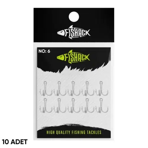 Fishack 3210 serisi üçlü iğne, lazer teknolojisiyle simetrik ve dengeli formda üretilmiştir. Çelik gövde üzerine nikel kaplama uygulanmıştır. No: 6 ölçüdeki bu model 19.05 mm uzunluğa ve 12.20 mm genişliğe sahiptir. Paket içerisinde 10 adet üçlü iğne bulunmaktadır. Farklı boy seçenekleri sayesinde farklı yem ve av disiplinlerine uyum sağlar.