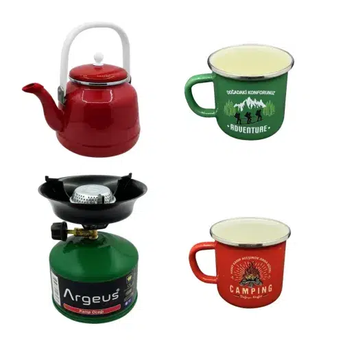 Yılbaşı Özel 4’lü Kamp ve Kahve Seti, yeni yılı sıcak ve keyifli bir atmosferde karşılamak isteyenler için özel olarak hazırlanmıştır. Doğa severler ve evde kamp keyfi yapmak isteyenler için ideal olan bu set; retro emaye bardaklar, dayanıklı kamp çaydanlığı ve pratik taşınabilir ocak ile her ortamda sıcak içecek keyfi sunar.