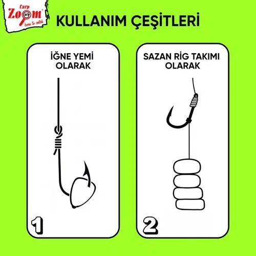 | Kullanım alanı | Sazan balıkçılığı, iğne yemi ve sazan rig |